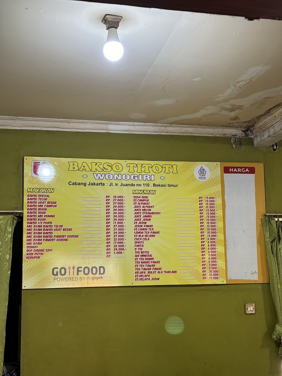 “ my advice, please fix the toilet so that it smells better and is not dirty thanks. for the meatballs i really like it, you guys have to eat here because BAKSO TITOTI will spoil your tongue with the broth and meatballs. ”